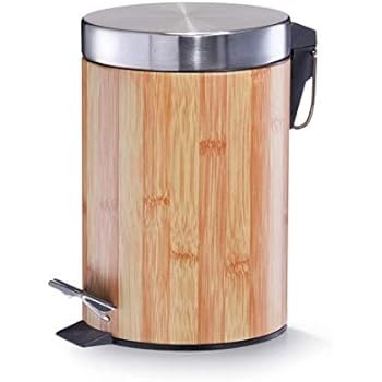 Bathroom Bin Bamboo Lid. The large opening of the lid ease to put trash in it and the bamboo material adds a natural touch to your home. Featuring foot pedal and plastic insert for easy use.