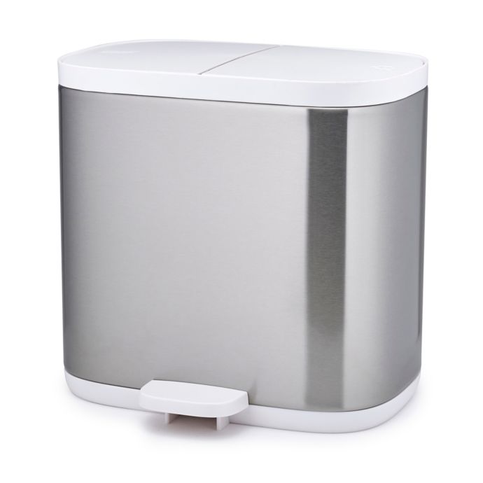 Joseph Joseph Split Bathroom Bin. Promote recycling not only in your kitchen but also in your bathroom with this simple stylish and easy to clean Joseph Joseph Split Bathroom Waste Separation Bin. Our small-space bins have two compartments so you can easily separate out your general waste and recyclable items in one compact design.