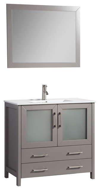 Legion Furniture 36 Solid Wood Bathroom Vanity Set. Vanity, glass and bowl are very close to correct dimensions. (I did not include the mirror that normally ships with this vanity). Drawers are made of solid poplar wood with metal glides.