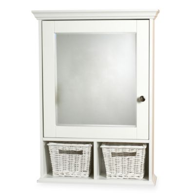 Zenith Wood Medicine Cabinet with Wicker Baskets in White ...