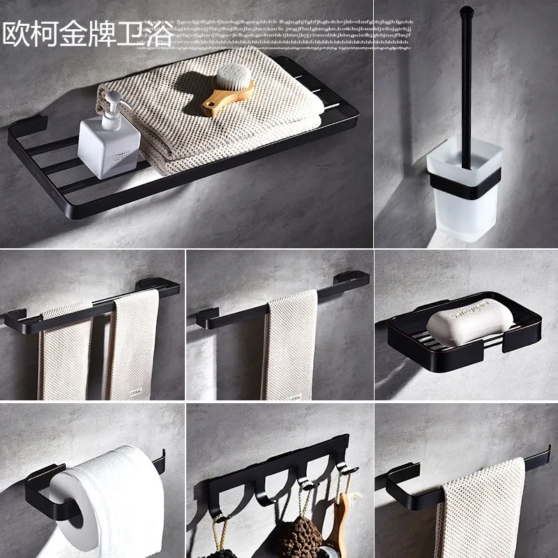 Black square bathroom accessories set wall mounted ...
