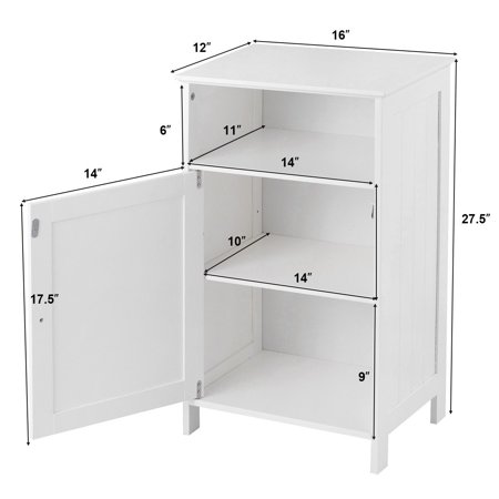 Gymax Bathroom Floor Storage Cabinet Side Table Adjustable ...