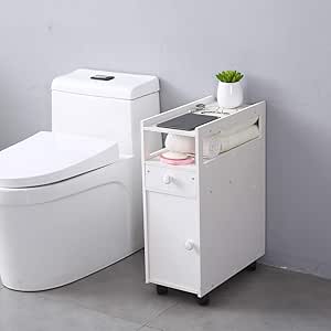 SSLine White Narrow Bathroom Cabinet with Wheels Rolling ...