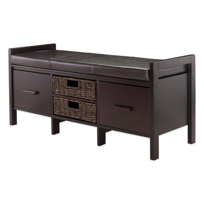 Winsome Trading Fulton Cushion Storage Bench with Baskets ...