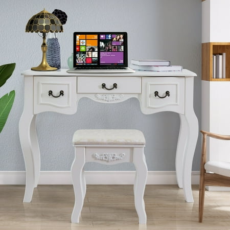 Gymax Bathroom Makeup Vanity Dressing Table Set With Stool ...