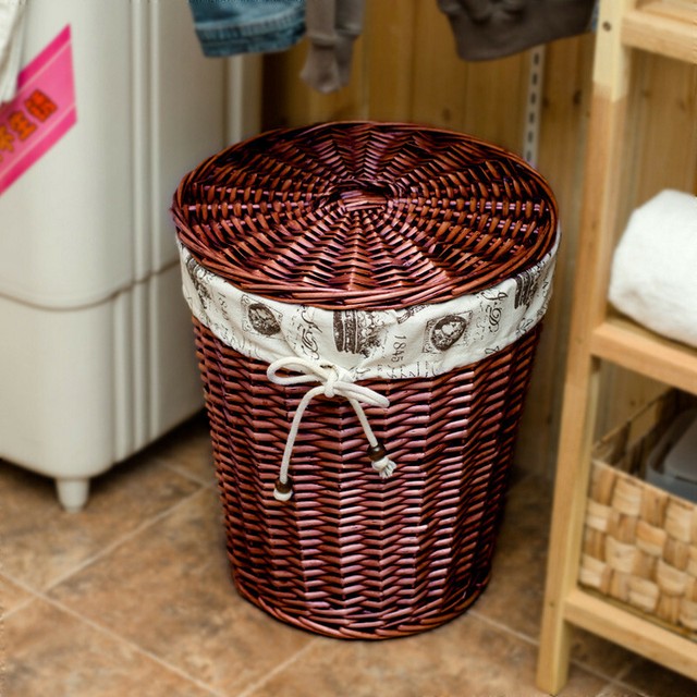 Rattan Or Wicker Wastebasket With Lid Small Bathroom ... (Lida Curtis) Take care of your washing with a laundry basket from our collection. Roll them up and place them in a fabric-lined basket. Wicker basket with a lid can be stacked on top of others to save space or use the efficient and elegant wicker shelf baskets to organize the clutter.